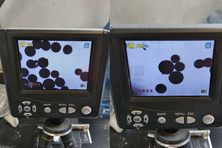 陶瓷粉混料噴霧干燥實(shí)驗結(jié)果物料在顯微鏡下面的效果